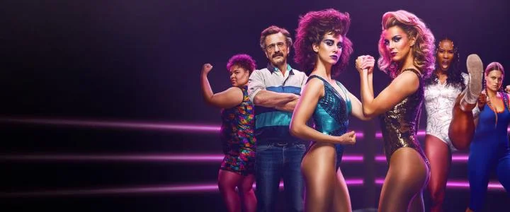 Glamorous Ladies of Wrestling. That's what GLOW actually stands for and it is not exactly a new idea. In 1986, a scripted all-female wrestling show, the first of it's kind, emerged, full of glitter and big hair. It's almost like the 80's cartoon JEM, but with real people and wrestling! For real. You can google it. At the time it's only real competition for ratings was the WWF (World Wrestling Federation) which sometimes featured women and dwarfs. Those were always highly rated shows, but it was never very pretty. I saw my fair share of WWF in high school, thanks to my male friends who just enjoyed the testosteroney melodrama and body slams. A dazzling all-female wrestling competition piqued the public's interest and became an international hit by 1989. Sadly, in 1990, it was cancelled suddenly at the height of its popularity. If you're interested in the real-life saga, catch the 2012 documentary, GLOW: The Story of the Gorgeous Ladies of Wrestling on Netflix. I think it's important to note that this is based in actual reality, along with all the misogyny, sexism, racism and prejudice of the time (which may have been somewhat worse than it is now...?)
